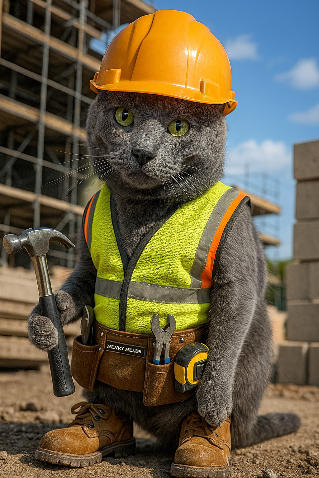 Well, that’s what AI thinks my friend Henry would look like if he were a construction cat. Here are some pictures of what Henry really looks like: